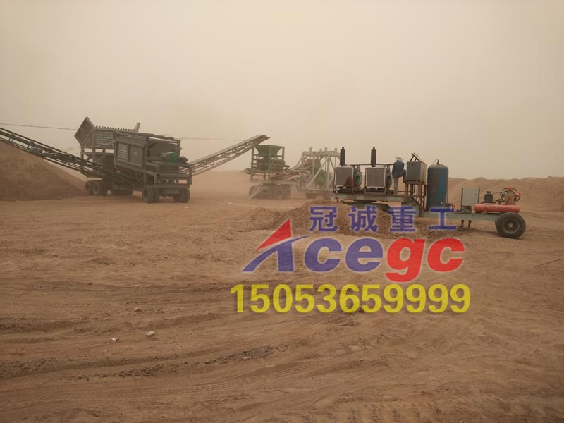 本套干選沙金設(shè)備/沙金風(fēng)選機(jī)為我公司獨(dú)立研發(fā)、生產(chǎn)的沙金干選機(jī)/砂金干選機(jī),適用于缺水少水的荒漠、戈壁灘等地區(qū),對(duì)于沙金的回收有極好的效果,回收率可達(dá)到80%以上,現(xiàn)在已經(jīng)廣泛應(yīng)用沙金干選行業(yè)中,本套設(shè)備處理量大、操作簡(jiǎn)單,經(jīng)過多年生產(chǎn)實(shí)踐以及用戶在實(shí)際生產(chǎn)過程中所遇到的問題反饋,不斷改進(jìn),現(xiàn)在已經(jīng)成為一套成熟的沙金設(shè)備,以上為青州冠誠(chéng)重工機(jī)械有限公司發(fā)往非洲蘇丹的沙金風(fēng)選機(jī)工作現(xiàn)場(chǎng)。更多沙金風(fēng)選機(jī)設(shè)備請(qǐng)單擊http://guancheng03.gotoip1.com/shajinshebei查詢。